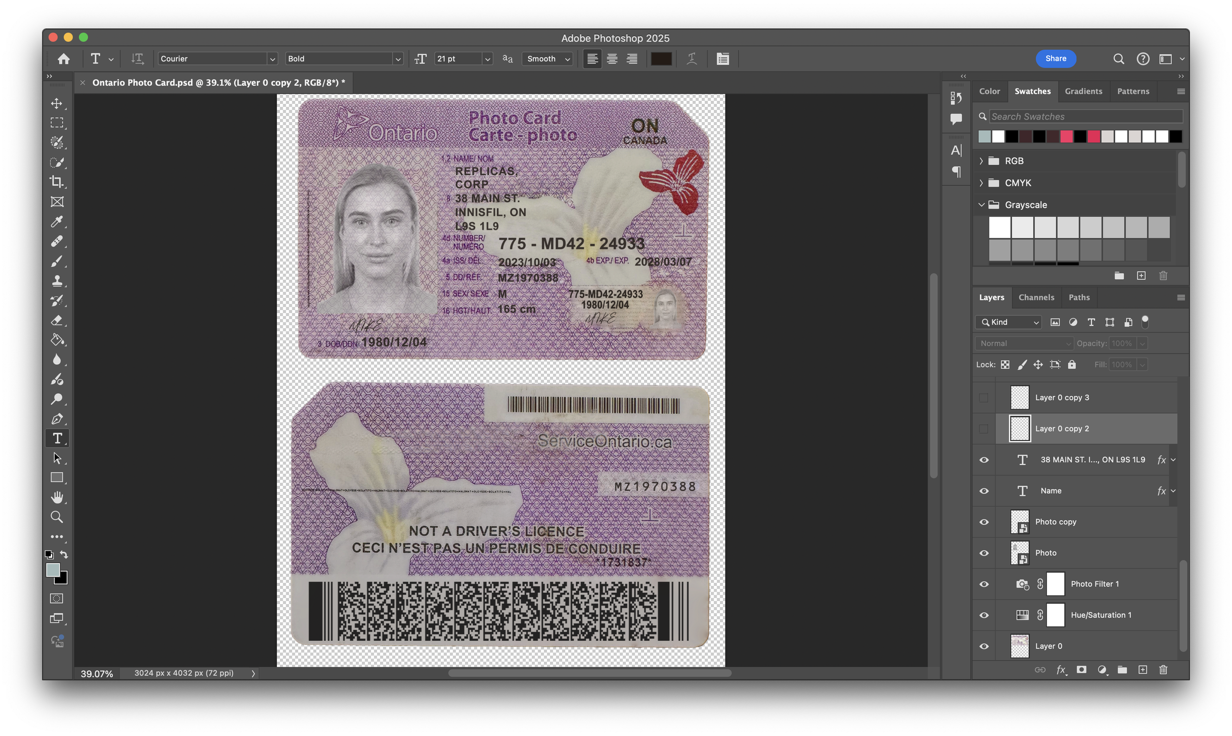 Ontario Health Card PSD - $150.00